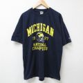 XL★古着 チャンピオン champion 半袖 ビンテージ Tシャツ メンズ 90年代 90s ミシガン 大きいサイズ コットン クルーネック 紺 ネイビー 25jun25 中古