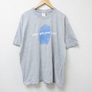 XL★古着 半袖 ビンテージ Tシャツ メンズ 00年代 00s 指紋 大きいサイズ クルーネック 薄グレー 霜降り