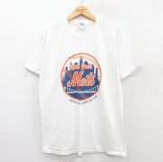 L★古着 半袖 ビンテージ Tシャツ メンズ 00年代 00s MLB ニューヨークメッツ コットン クルーネック 白 メジャーリーグ ベースボール 野球