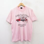 L★古着 フルーツオブザルーム 半袖 ビンテージ Tシャツ メンズ 80年代 80s 車 男性 クルーネック USA製 ピンク