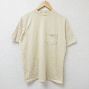 L★古着 半袖 ビンテージ Tシャツ メンズ 80年代 80s 無地 胸ポケット付き クルーネック USA製 ベージュ