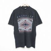 L★古着 半袖 ビンテージ Tシャツ メンズ 80年代 80s ネイティブ柄 ラグ柄 コットン クルーネック USA製 黒