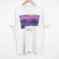 L★古着 半袖 ビンテージ Tシャツ メンズ 90年代 90s ヤシの木 ビーチ コットン クルーネック 薄グレー 霜降り