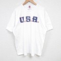 XL★古着 半袖 ビンテージ Tシャツ メンズ 00年代 00s USAロゴ 大きいサイズ コットン クルーネック 白