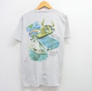 L★古着 半袖 ビンテージ Tシャツ メンズ 90年代 90s 魚 クルーネック 薄グレー 霜降り