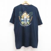 XL★古着 半袖 ビンテージ Tシャツ メンズ 00年代 00s 海賊 大きいサイズ コットン クルーネック 紺