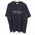 XL★古着 半袖 ビンテージ Tシャツ メンズ 00年代 00s フレンチ 刺繍 コットン クルーネック 黒 ブラック 25jul15 中古