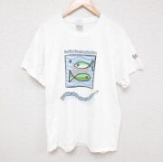 L★古着 半袖 ビンテージ Tシャツ メンズ 00年代 00s 魚 コットン クルーネック 白