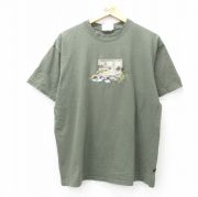 XL★古着 半袖 ビンテージ Tシャツ メンズ 00年代 00s 犬 大きいサイズ クルーネック 濃緑