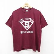 L★古着 半袖 ビンテージ Tシャツ メンズ 00年代 00s BHBL フットボール コットン クルーネック エンジ