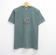 L★古着 半袖 ビンテージ Tシャツ メンズ 00年代 00s ワニ ニューオーリンズ 刺繍 コットン クルーネック 緑