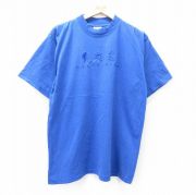 L★古着 半袖 ビンテージ Tシャツ メンズ 00年代 00s カンザスジェイホークス コットン クルーネック 青