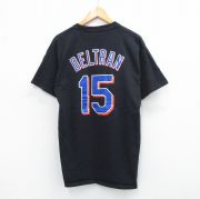 L★古着 マジェスティック 半袖 ビンテージ Tシャツ メンズ 00年代 00s MLB ニューヨークメッツ カルロスベルトラン 15 コットン クルーネック 黒 メジャーリーグ ベースボール 野球