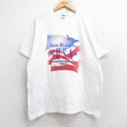 XL★古着 フルーツオブザルーム 半袖 ビンテージ Tシャツ メンズ 00年代 00s アメリカ 星条旗 大きいサイズ コットン クルーネック 白