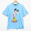 【商品名】 L★古着 半袖 ビンテージ Tシャツ メンズ 90年代 90s ディズニー ミッキー コットン クルーネック USA製 水色【spe】