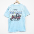 L★古着 オニータ ONEITA 半袖 ビンテージ Tシャツ メンズ 90年代 90s バイクウィーク コットン クルーネック USA製 水色 26apr04