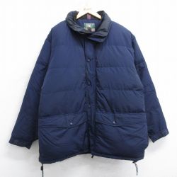 L★古着 EMS 長袖 ナイロン ダウン ジャケット メンズ 90年代 90s 襟フリース ロング丈 紺