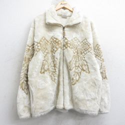 L★古着 長袖 フリース ジャケット メンズ 90年代 90s 羽 インディアン カナダ製 薄ベージュ系他