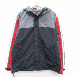 XL★古着 ナイキ NIKE 長袖 ナイロン ジャケット パーカー メンズ 00年代 00s ワンポイントロゴ 大きいサイズ グレー他 内側フリース