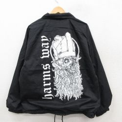 XL★古着 長袖 ロック バンド ナイロン ジャケット メンズ HARMSWAY ラグラン 黒