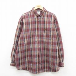 M★古着 エディーバウアー 長袖 ビンテージ Tシャツ メンズ 00年代 00s 千鳥格子 コットン ヘンリーネック 赤他