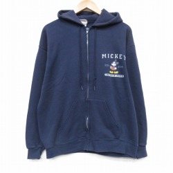 L★古着 長袖 フルジップ スウェット パーカー メンズ 90年代 90s ディズニー ミッキーUSA製 紺