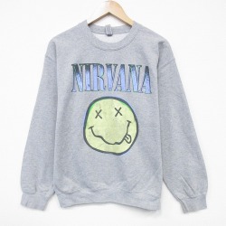 M★古着 長袖 ロック バンド スウェット メンズ ニルバーナ ニルヴァーナ クルーネック グレー 霜降り