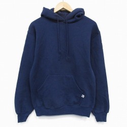 M★古着 ラッセル 長袖 スウェット パーカー メンズ 90年代 90s 無地 USA製 紺