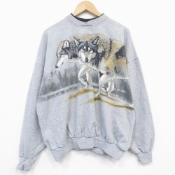 XL★古着 ART UNLIMITED 長袖 スウェット メンズ 00年代 00s オオカミ 大きいサイズ クルーネック グレー 霜降り