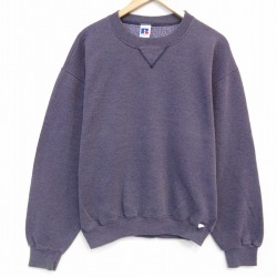L★古着 ラッセル 長袖 スウェット メンズ 00年代 00s 無地 クルーネック 薄紫