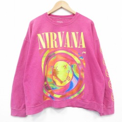 XL★古着 長袖 ロック バンド スウェット メンズ ニルバーナ ニルヴァーナ クルーネック ピンク 霜降り