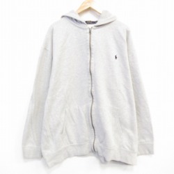 XL★古着 ラルフローレン 長袖 フルジップ スウェット パーカー メンズ ワンポイントロゴ 大きいサイズ 薄グレー 霜降り フード内側サーマル