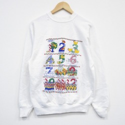 M★古着 長袖 スウェット メンズ 80年代 80s 数字 ラグラン クルーネック USA製 白