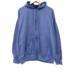 XL★古着 長袖 フルジップ スウェット パーカー メンズ 90年代 90s 無地 大きいサイズ 薄紺 霜降り