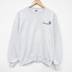 L★古着 ラッセル 長袖 スウェット メンズ 90年代 90s 木 クルーネック USA製 薄グレー 霜降り