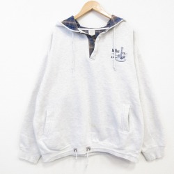XL★古着 長袖 ロック バンド ハーフジップ スウェット パーカー メンズ 90年代 90s ビートルズ 大きいサイズ 白 霜降り