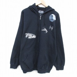 XL★古着 長袖 フルジップ スウェット パーカー メンズ スターウォーズ ミレニアムファルコン 大きいサイズ 黒