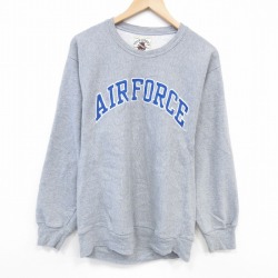 M★古着 STEVE&BARRYS 長袖 スウェット メンズ ミリタリー エアフォース 刺繍 クルーネック グレー 霜降り